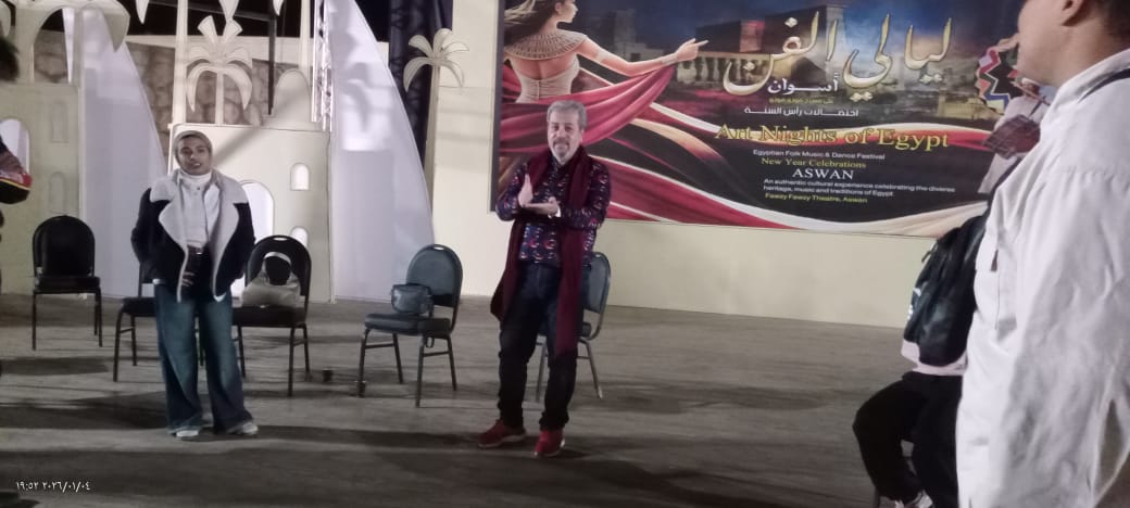 وفي سياق متصل، أُقيمت ورشة التمثيل، التي قدمها الدكتور علاء قوقة، بحضور عدد من الممثلين من محافظة أسوان، حيث تناول خلالها أدوات الممثل، والتي تشمل: الأدوات الحركية، والصوتية، والوجدانية، والعقلية، إلى جانب الحديث عن مفهوم الأداء الحرفي في التمثيل المسرحي.