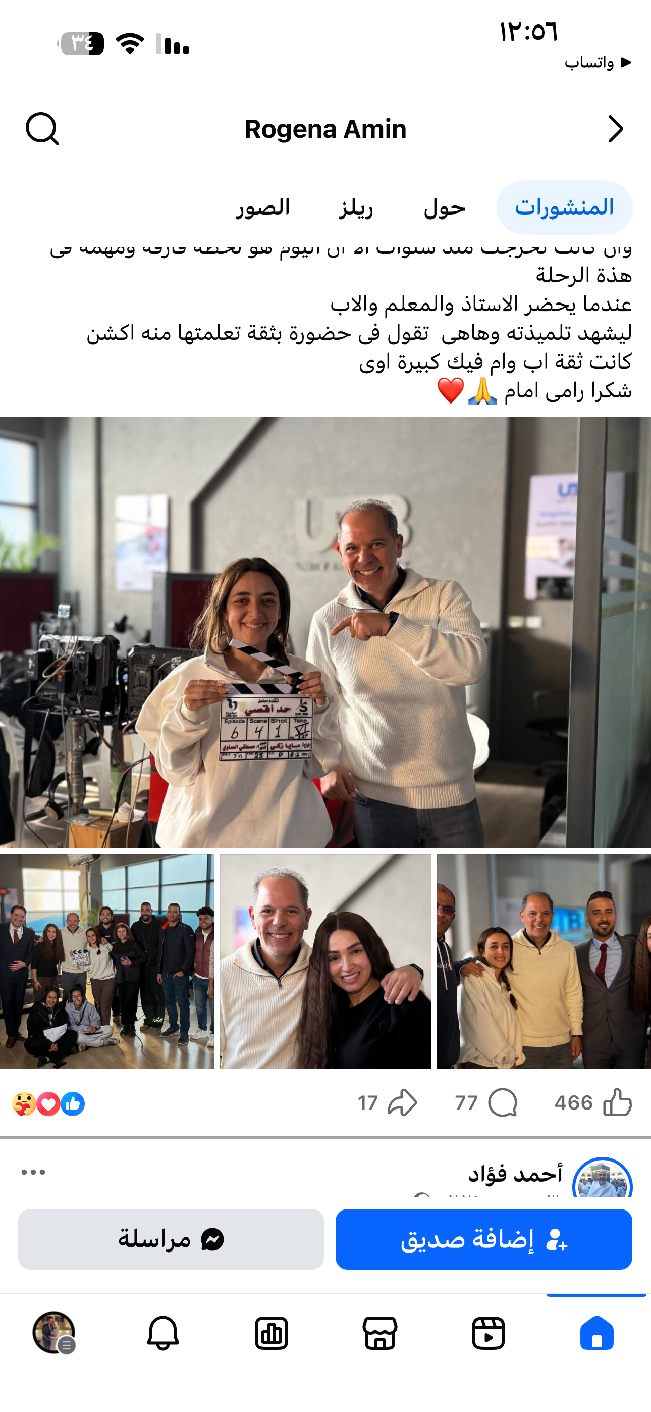 ومن جانبها عبرت المخرجة مايا أشرف زكي عن سعادتها الكبيرة بهذه الزيارة، مؤكدة أنها تمثل لحظة فارقة ومهمة في رحلتها الفنية، مشيرة إلى أن البداية كانت منذ دراستها في السنة الأولى بمعهد السينما – قسم الإخراج، قبل أن تبدأ بعد شهرين فقط من الدراسة رحلتها العملية مع المخرج الكبير رامي إمام، الذي وصفته بأنه كان بمثابة “مدرسة موازية لمعهد السينما”، تعلمت فيها الكثير فنيًا وإنسانيًا.