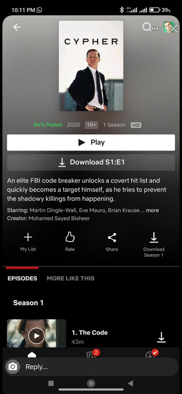 يمزج مسلسل CYPHER على مدار السبع حلقات بين الواقع والخيال العلمي، حيث تدور أحداثه حول عالم سري تصطدم فيه التكنولوجيا المتقدمة مع النفوذ والسلطة، ضمن سلسلة من الألغاز ومعرفة قائمة اغتيالات خطيرة التي يحاول فكها ويل سكوت العبقري في تحليل الشفرات الذي يلعب دوره النجم العالمي مارتن دنجل وال، واستطاع بشير تحقيق تصاعد درامي حلقة تلو الأخرى.