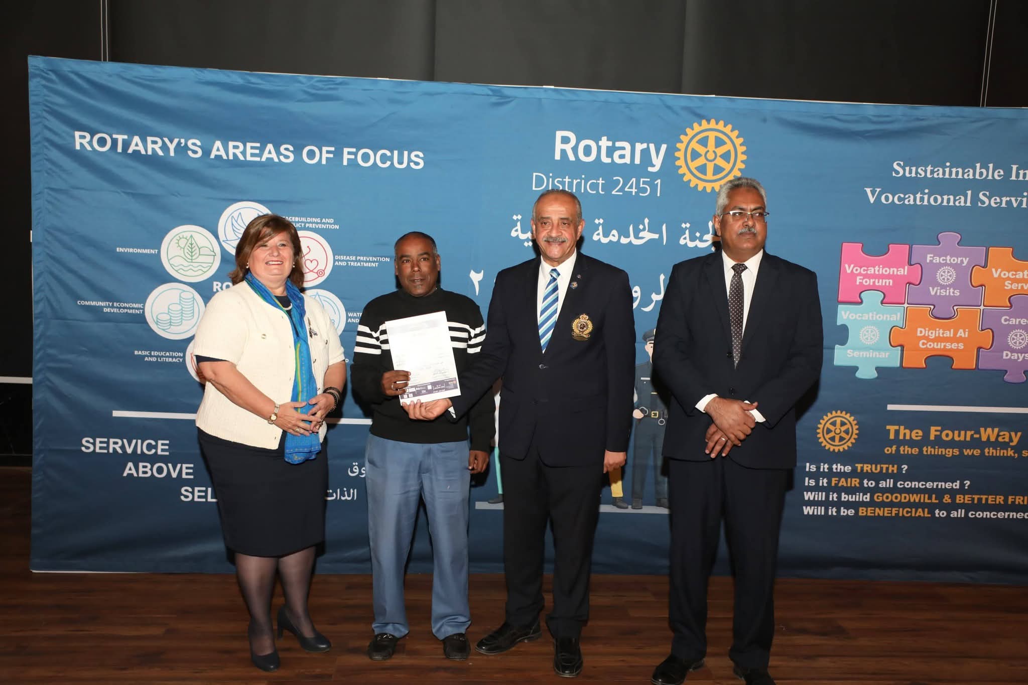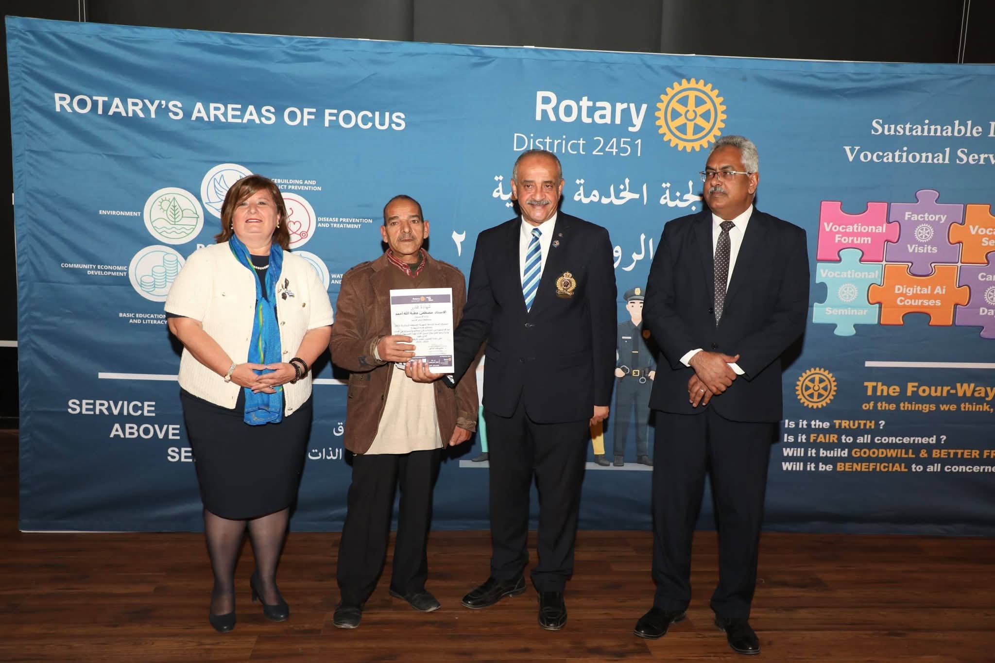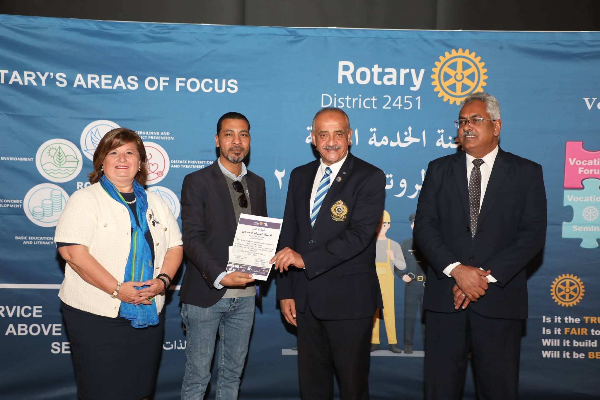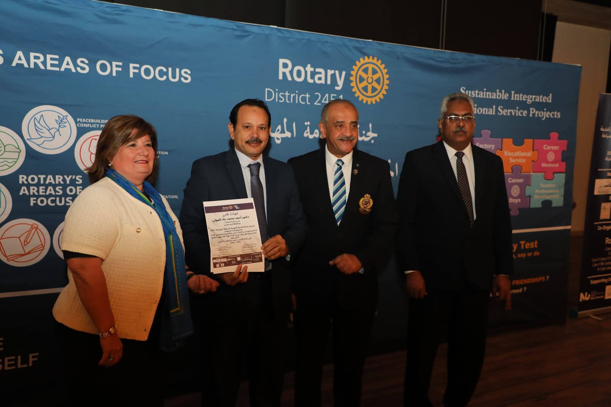 ويدير محافظ سابق الدكتور أحمد سعادة ورشة عمل عن كيف تصمم مشروع خدمة مهنية مستدام ومؤثر، ويتحدث محافظ سابق المهندس عبد الحميد العوا رئيس لجنة المؤسسة الروتارية بالمنطقة، عن المؤسسة الروتارية و فرق التدريب المهني (VTT).