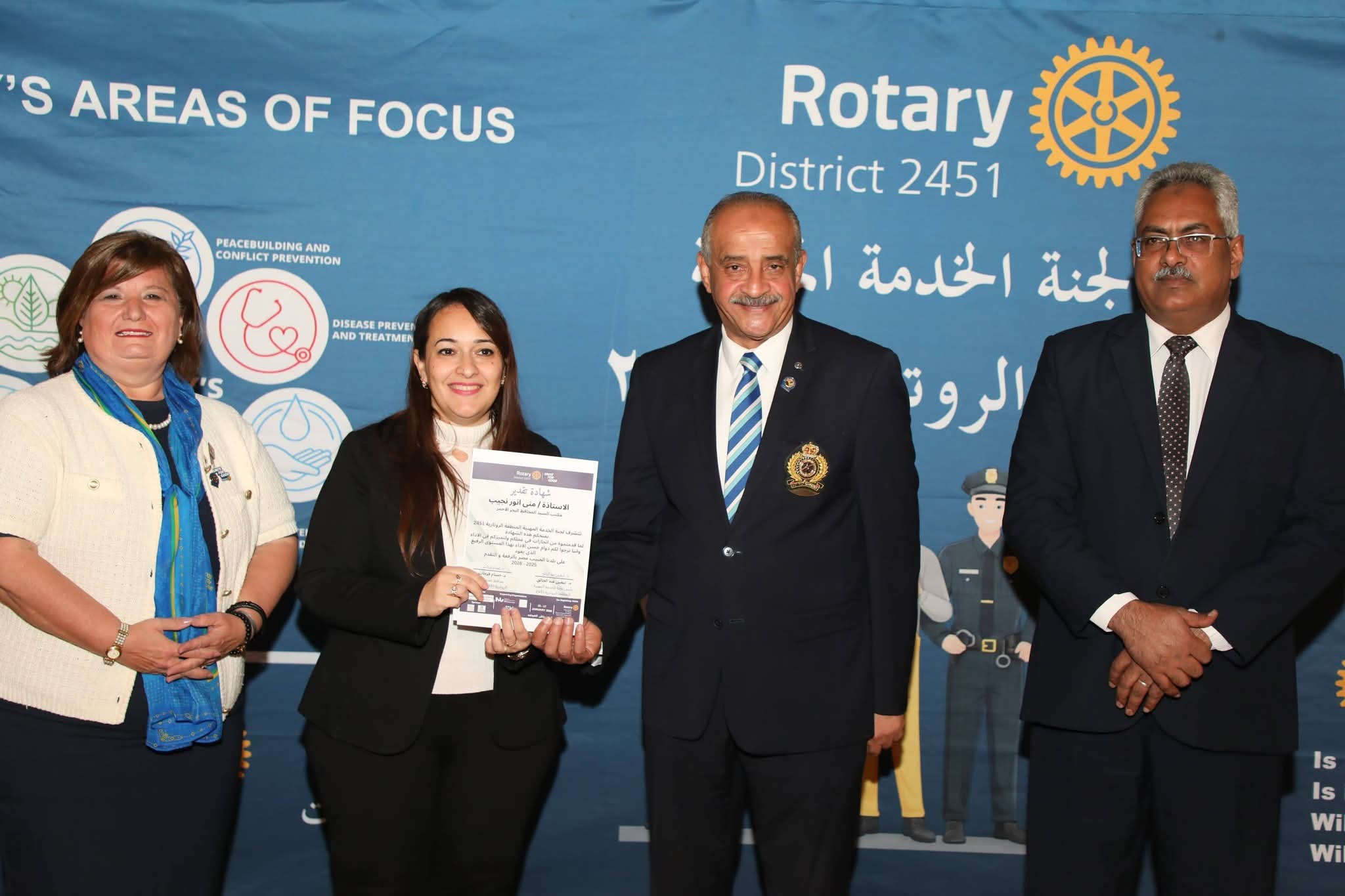 كما تشارك نانسي المهدي منسق الكادر بالمؤسسة الروتارية، عن فرصة الخدمة المهنية من خلال برنامج كوادر الفنين التقنين التابع للمؤسسة الروتارية.