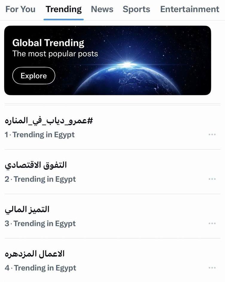 تصدر حفل النجم الكبير عمرو دياب في أرينا المنارة تريند موقع التواصل الاجتماعي "اكس" ،حيث أحتل هاشتاج عمرو دياب في المنارة صدارة الهاشتاجات الأكثر بحثا عبر الموقع .