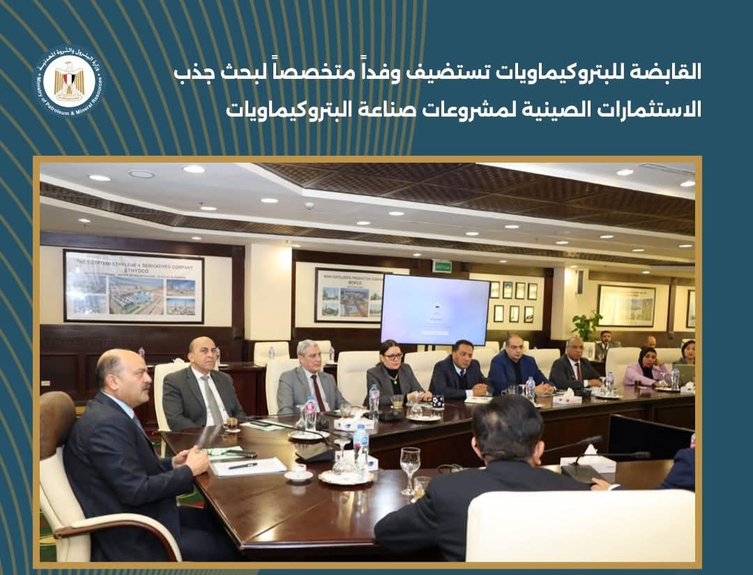 استضافت الشركة المصرية القابضة للبتروكيماويات وفداً رفيع المستوى من مؤسسة الصين للهندسة البترولية والبتروكيماوية (CPPEI)، لبحث فرص التعاون والإستثمار في المشروعات القائمة والمستقبلية.