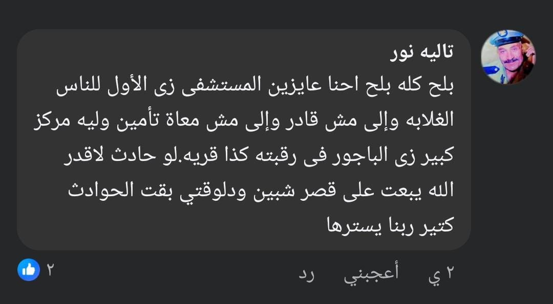 وفي السياق ذاته، قالت المواطنة تالية نور إن مستشفى الباجور كانت في السابق ملاذًا للفقراء ومحدودي الدخل، مطالبة بإعادتها إلى دورها الحقيقي، خاصة أنها تخدم عددًا كبيرًا من القرى، مؤكدة أن غياب الخدمة يدفع المصابين في الحوادث إلى التوجه لمستشفيات بعيدة مثل قصر شبين.