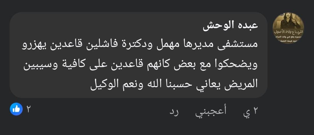 واختتم عدد من المواطنين مطالبهم بتدخل عاجل وحقيقي من وزارة الصحة، مؤكدين أن تجميل المستشفى بالسجاد والستائر لا يعوض غياب الأطباء أو انعدام الرعاية، مشددين على أن أرواح المرضى لا تحتمل مزيدًا من الإهمال.