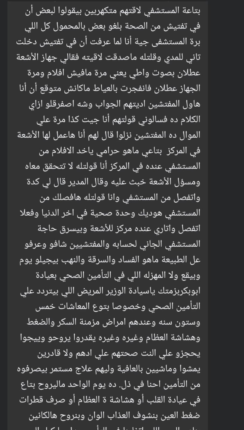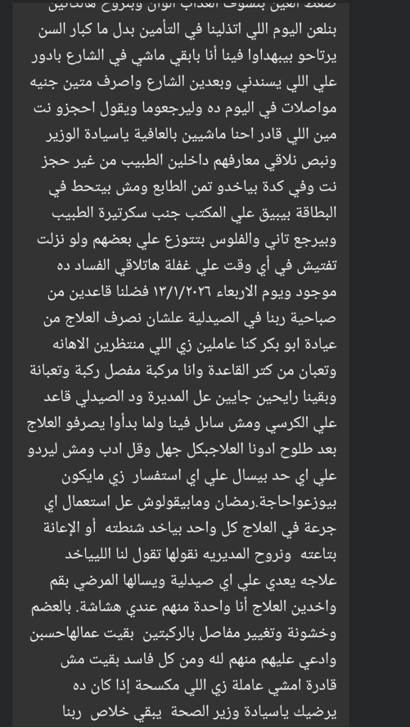 وأشار إلى وجود تمييز واضح في الدخول للأطباء، حيث يتم السماح لبعض المعارف بالدخول دون حجز، مقابل تحصيل رسوم لا تُثبت في البطاقات الطبية، معتبرًا ذلك “فسادًا علنيًا”.