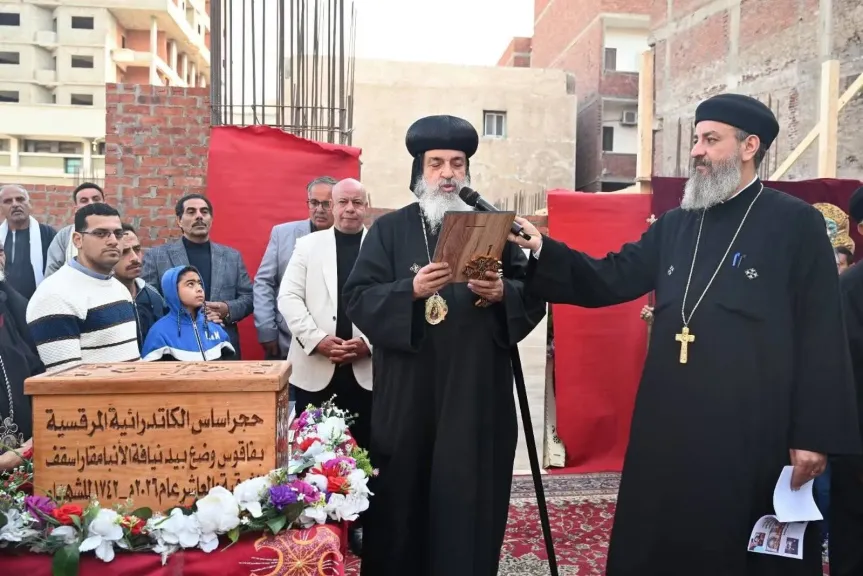 اسقف الشرقية يضع حجر أساس الكاتدرائية المرقسية بمدينة فاقوس