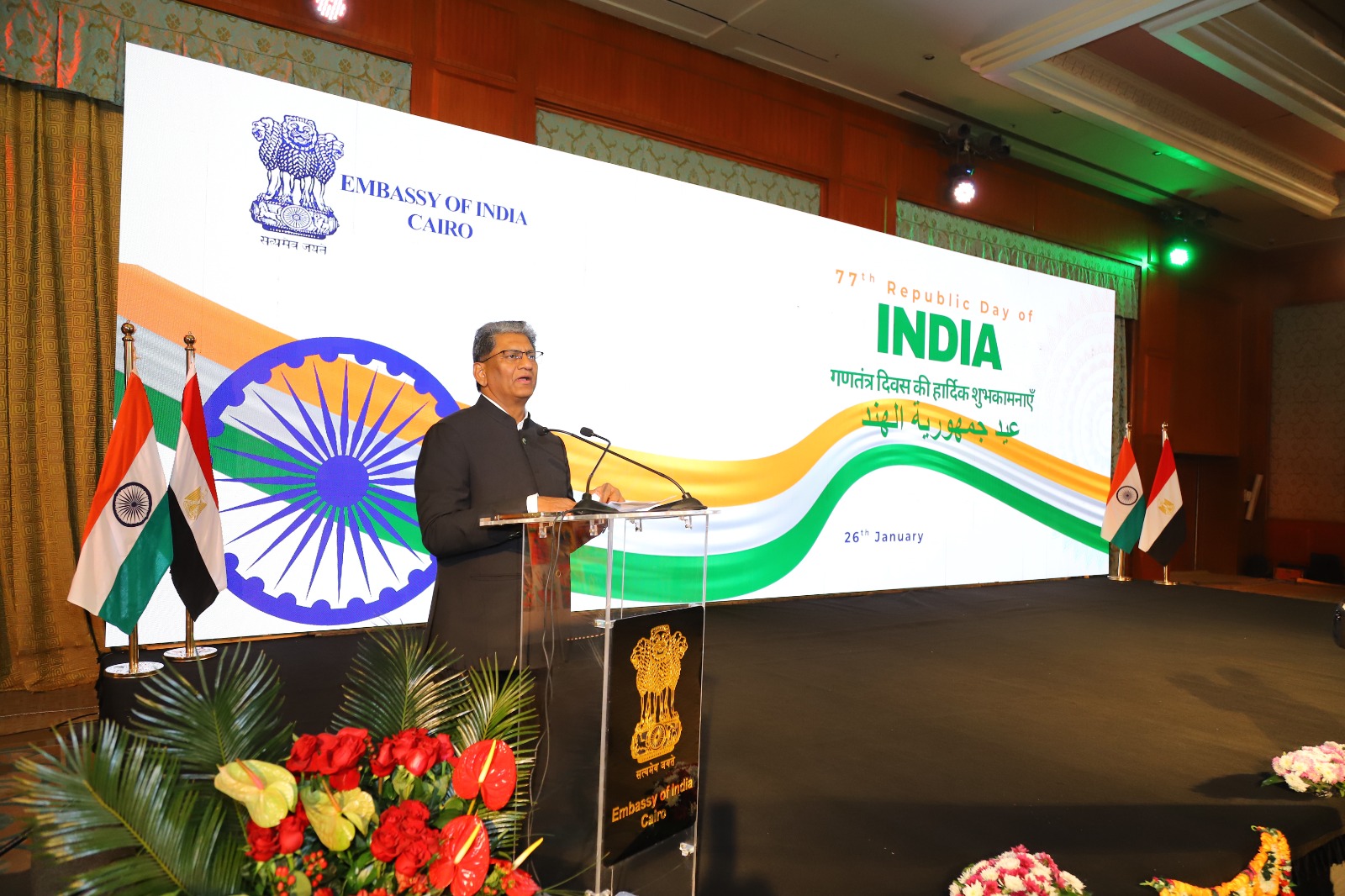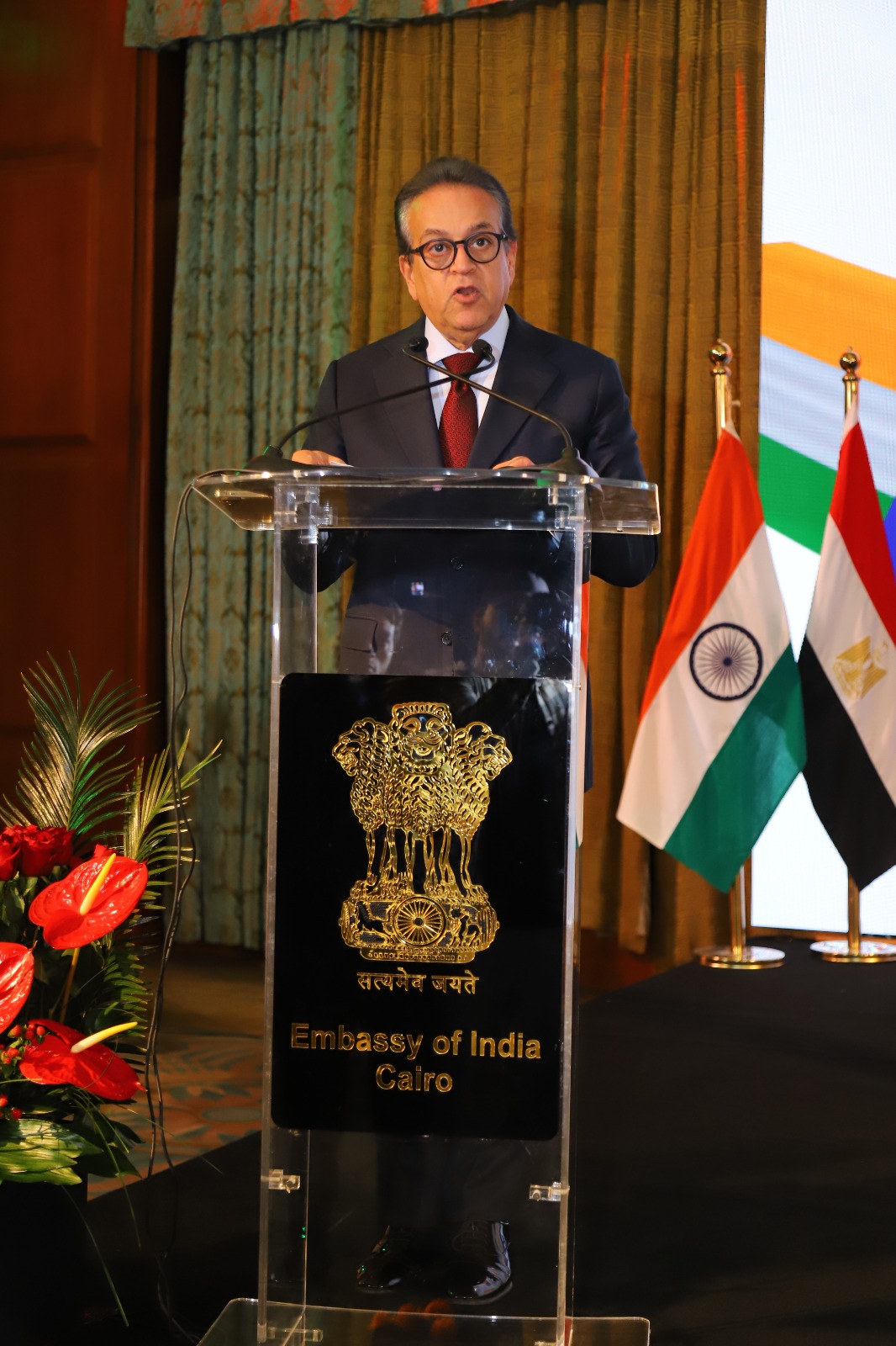 وقال سفير دولة الهند بجمهورية مصر العربية في كلمته: بالنسبة لي ولزوجتي، سنيها، تحمل هذه المناسبة معنى خاصًا، لأنها تمثل أول حفل استقبال لنا بمناسبة العيد الوطني الهندي في مصر. فبعد أن عشت في مصر كدبلوماسي شاب قبل ثلاثة عقود، أشعر اليوم بالتواضع عندما أرى كيف نمت علاقتنا بشكل أكبر وأعمق وأكثر تنوعًا، في ظل التوجيه الشخصي من فخامة الرئيس السيسي ورئيس الوزراء السيد/مودي.