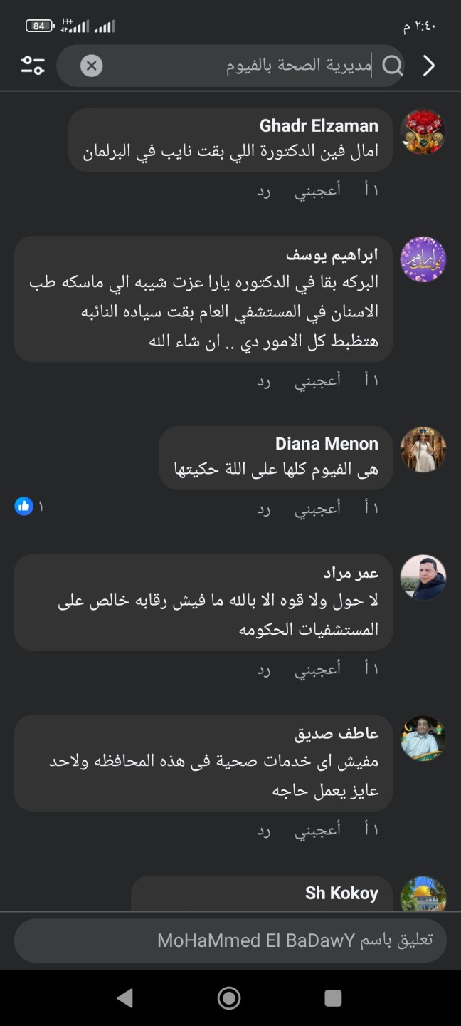 بينما تقول أخرى: «كل مستشفيات الفيوم أسوأ ما يمكن، مافيش رقابة ولا حد حاسس بالناس».