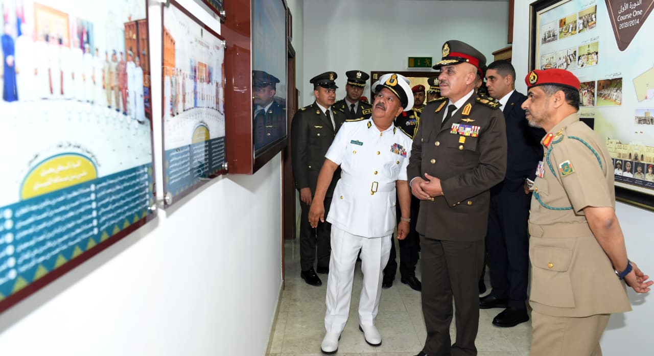 وعلى هامش الزيارة قام الفريق أحمد خليفة بزيارة أكاديمية الدراسات الإستراتيجية والدفاعية العُمانية، كما تفقد كلية الدفاع الوطنى العُمانية واستمع إلى عرض تقديمى تناول أقسام الكلية وتخصصاتها وبرامجها العلمية ودورها فى إعداد وتأهيل القيادات الوطنية العمانية ، بما يمكنهم من تحقيق المصالح العليا للبلاد فى مختلف المجالات العسكرية والمدنية.