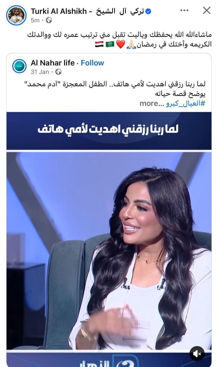 تركي آل الشيخ يشيد ببرنامج «العيال كبروا» على قناة النهار لايف للإعلامية هدير عبد الرازق ويتصدر المشاهدات