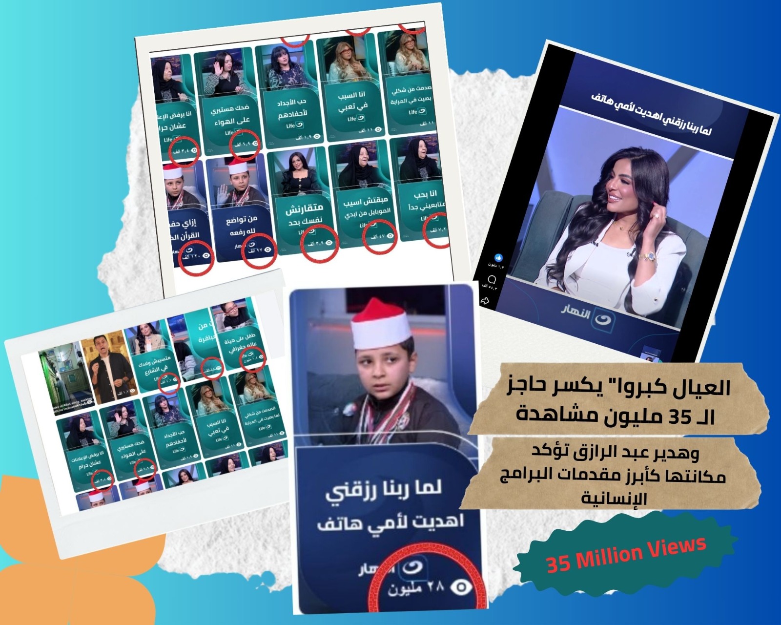 نجاح برنامج«العيال كبروا» لم يقتصر على الأرقام فقط، بل امتد ليكون حالة إعلامية تؤكد قوة البرامج الإنسانية التي تجمع بين المشاهدة الواسعة والمحتوى الهادف، مع إبراز قدرة الإعلامية هدير عبد الرازق على تقديم محتوى مؤثر واحترافي في الوقت نفسه.