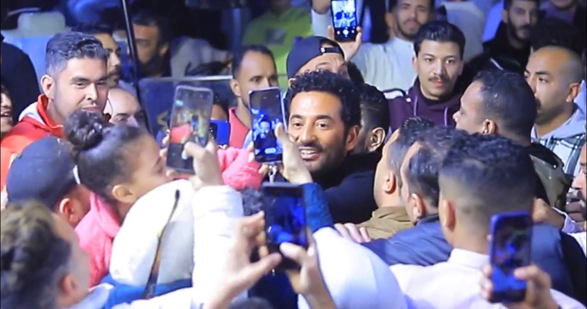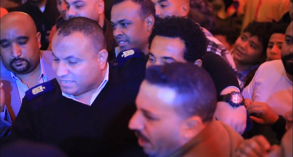 بالصور..الأمن يتدخل للسيطرة على تدافع الجمهور علي عمرو سعد أثناء تصوير إفراج