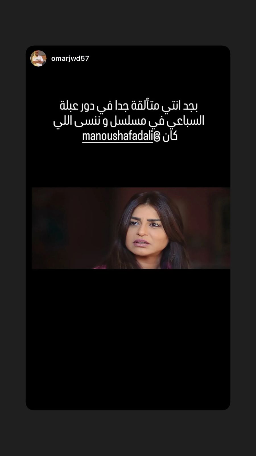 وجاء من بين التعليقات: "بجد انتي متألقة جداً في دور عبلة السباعي في مسلسل وننسى اللي كان".