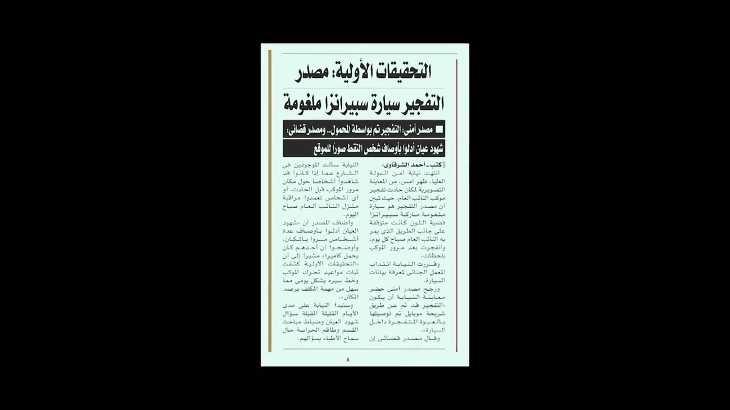 وخلال التحقيق مع أبو القاسم، يعترف بأنه ساعد عنصرًا آخر يحمل الاسم الحركي «الأحمدي» في تجهيز العبوة الناسفة ووضعها داخل السيارة المستخدمة في العملية. كما يدلي بمعلومات عن سيارة أخرى مرتبطة بالمخطط.