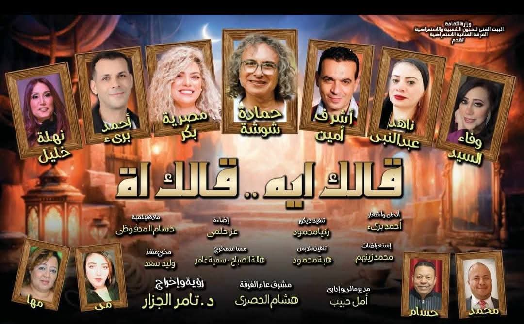 و يشهد أول أيام العيد عرضًا متنوعًا يجمع بين الإبداع المسرحي والاستعراضات الفنية، حيث تقدم الفرقة القومية للفنون الشعبية بقياده د.محمد الفرماوي باقة من أشهر استعراضاتها التي تعكس التراث المصري الأصيل، إلى جانب العرض المسرحي الكوميدي "قالك إيه قالك آه" ذات الطابع الاستعراضي الكوميدي ، وهى من إخراج د.تامر الجزار.