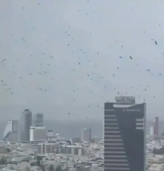 وأظهرت اللقطات آلاف الغربان السوداء وهي تحلق بكثافة في سماء تل أبيب، مما خلق سحابة سوداء متحركة أثارت ذهول السكان ودهشة المتابعين وتساؤلاتهم حول سبب هذا التجمع المفاجئ، وحسب صحيفة "ديلي ميل" البريطانية، فقد أثار المشهد جدلا واسعا عبر مواقع التواصل الاجتماعي في المجتمع الإسرائيلي، وحظي باهتمام أكثر من دوي الصواريخ الإيرانية التي تستهدف تل أبيب.