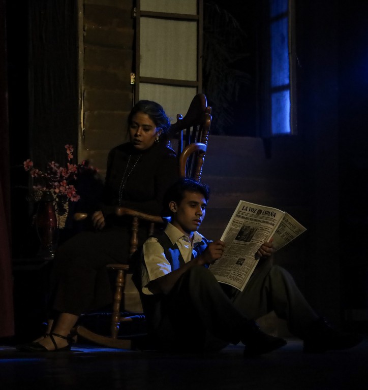 وعن العرض ذكر «قشوة» أن عرض «الكمامة» تدور أحداثه في دولة إسبانيا بين عامي 1936 1939 يجبر «ايسياس كرابو» أفراد عائلته على الالتزام بالصمت داخل منزلهم كعقاب لجرائمه السابقة بينما يتصاعد الصراع النفسي في إطار من القمع الاجتماعي والسياسي حيث تتحول الكمامة من اداة تقييد جسدية إلى حالة وجودية من الضغط النفسي والتداخل الحسي، واكد «قشوة» أن اسوأ الطغاة من يظنون أنفسهم على حق.
