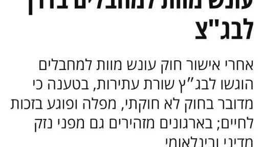 أعربت النائبة ولاء هرماس، عضو مجلس الشيوخ، عن إدانتها الشديدة لما أُثير بشأن إقرار قانون يجيز إعدام الأسرى الفلسطينيين، معتبرة أن هذا التشريع يمثل انتهاكًا صارخًا لكافة قواعد القانون الدولي الإنساني والمواثيق الدولية المعنية بحقوق الإنسان.