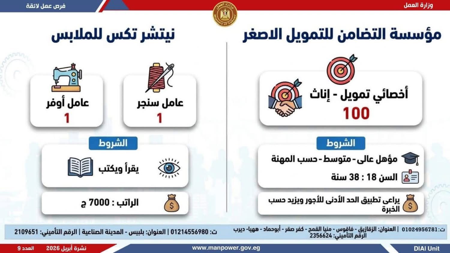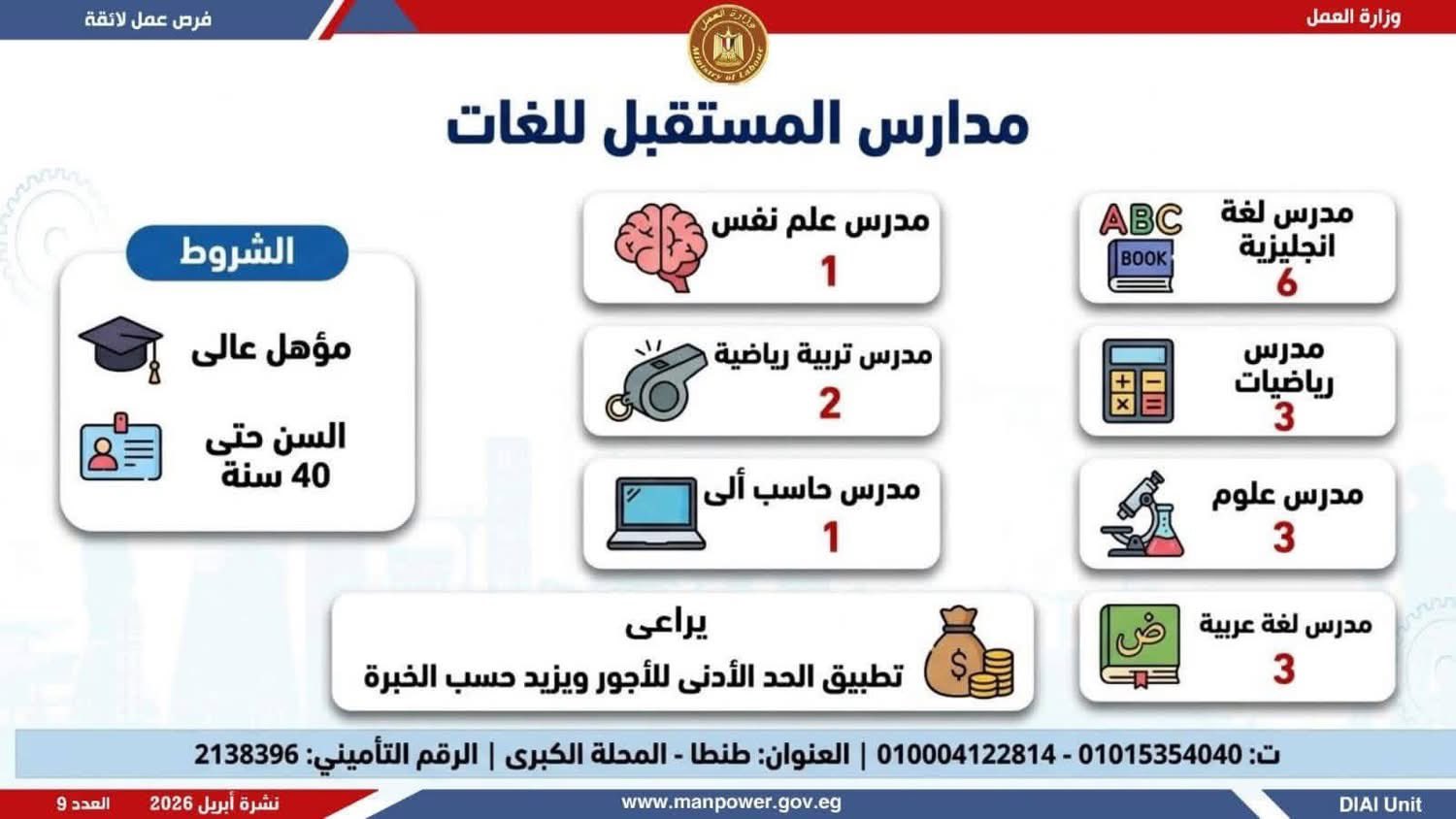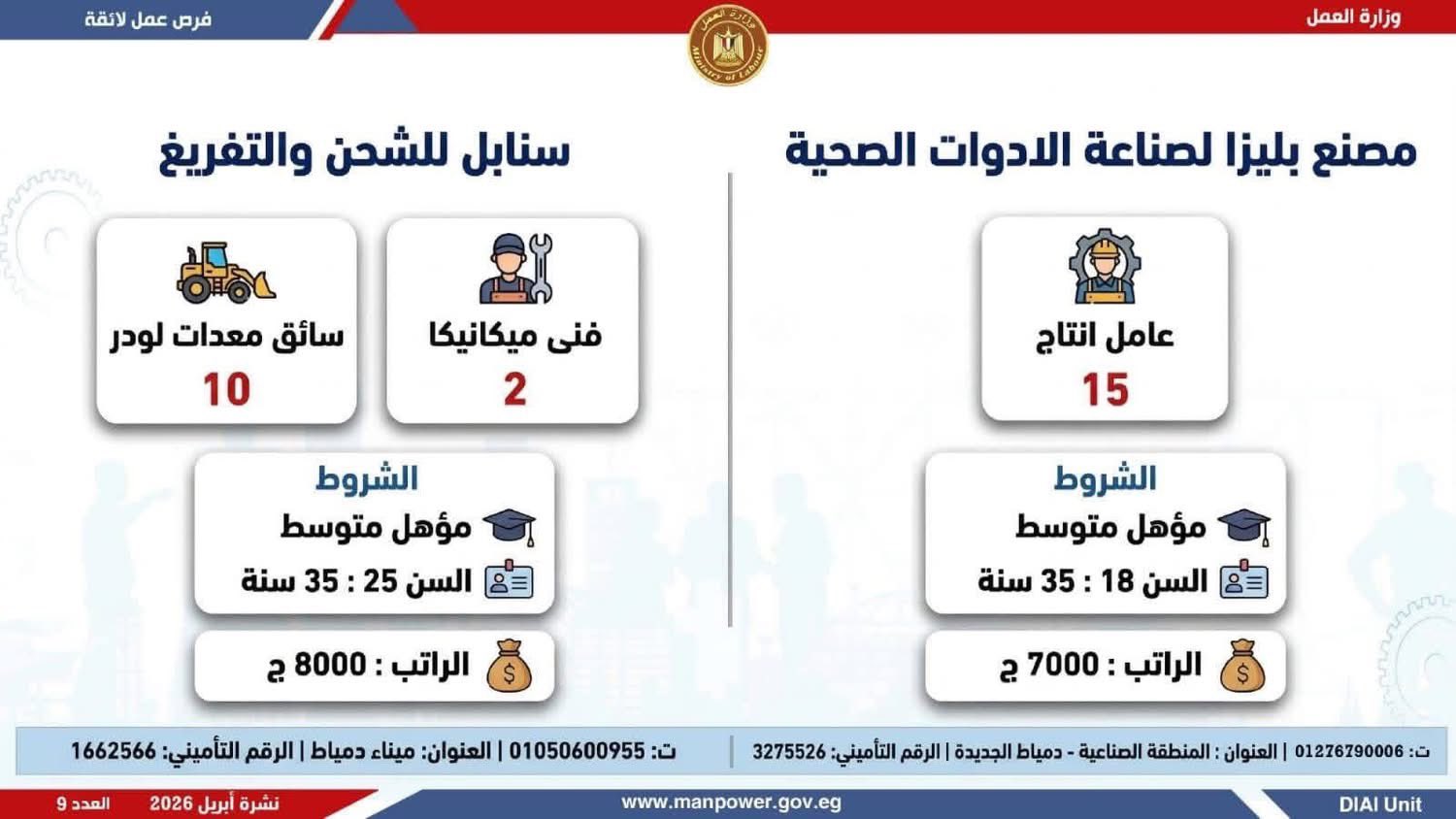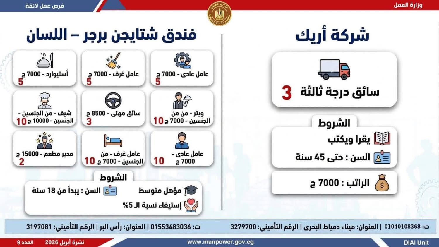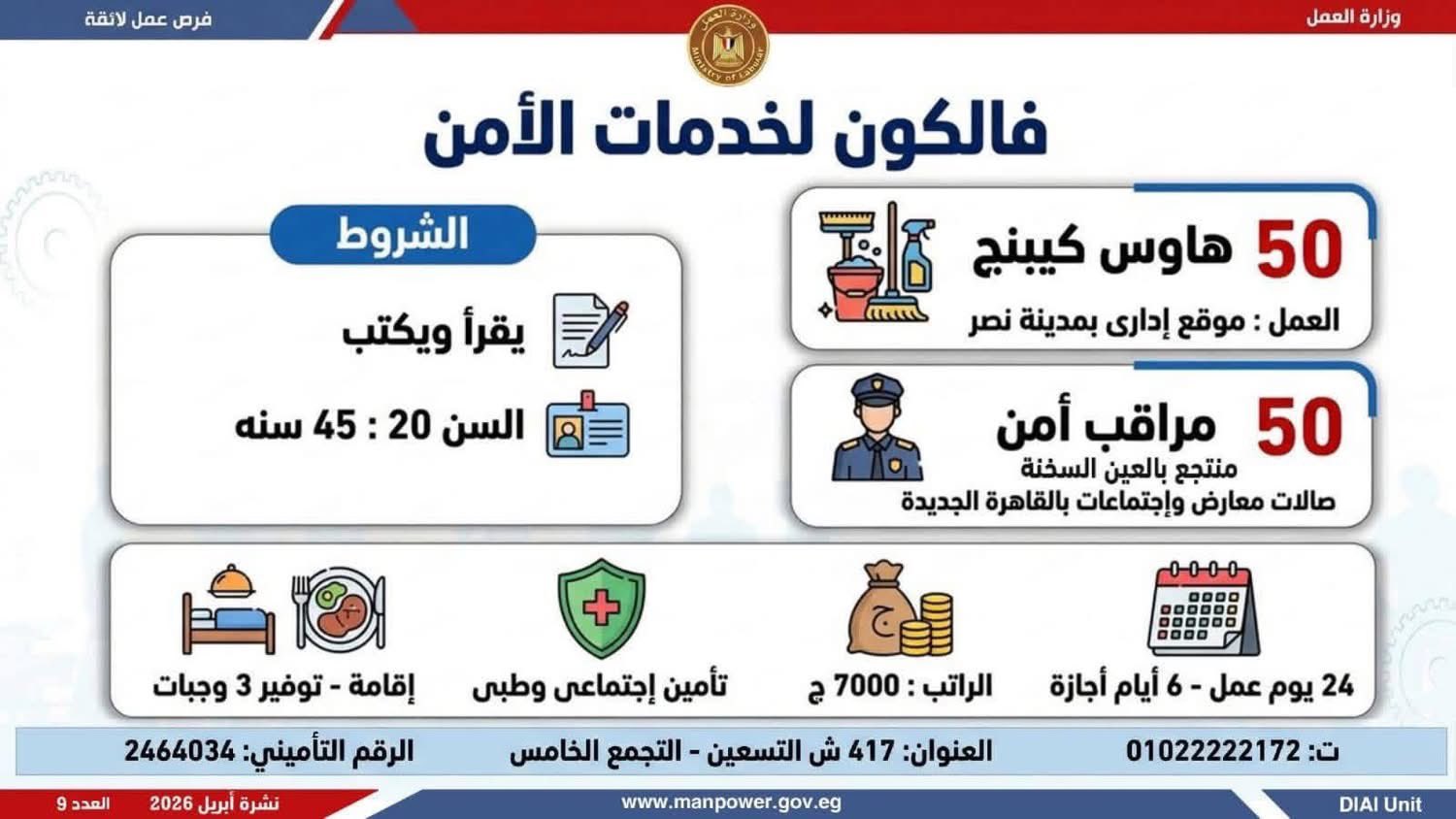 دعت الوزارة جميع الشباب الراغبين في خوض غمار التحدي والاستفادة من هذه الفرص إلى البدء في تجهيز سيرهم الذاتية، والتوجه إلى المنصة الإلكترونية الرسمية للوزارة أو مكاتب العمل التابعة لها في مختلف المحافظات، مؤكدة أن باب التقديم مفتوح لفترة محددة لاستيعاب الأعداد المطلوبة قبل بدء مراحل المقابلات الفنية.