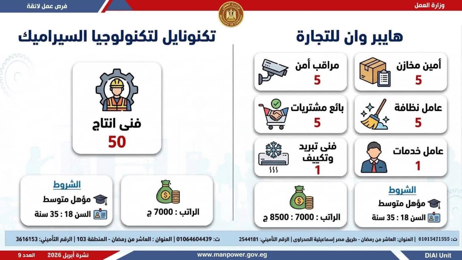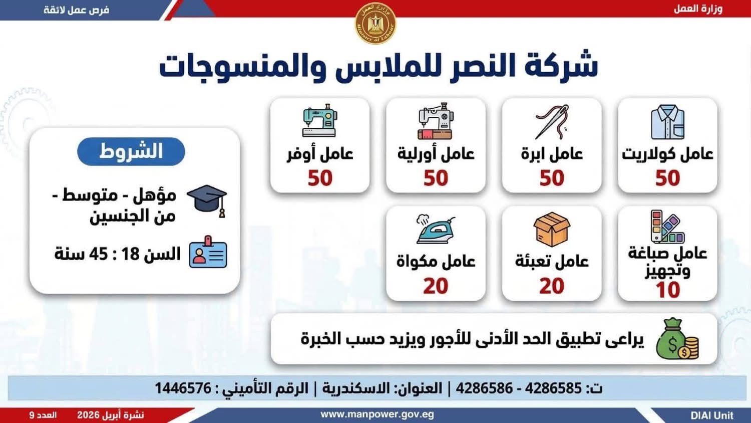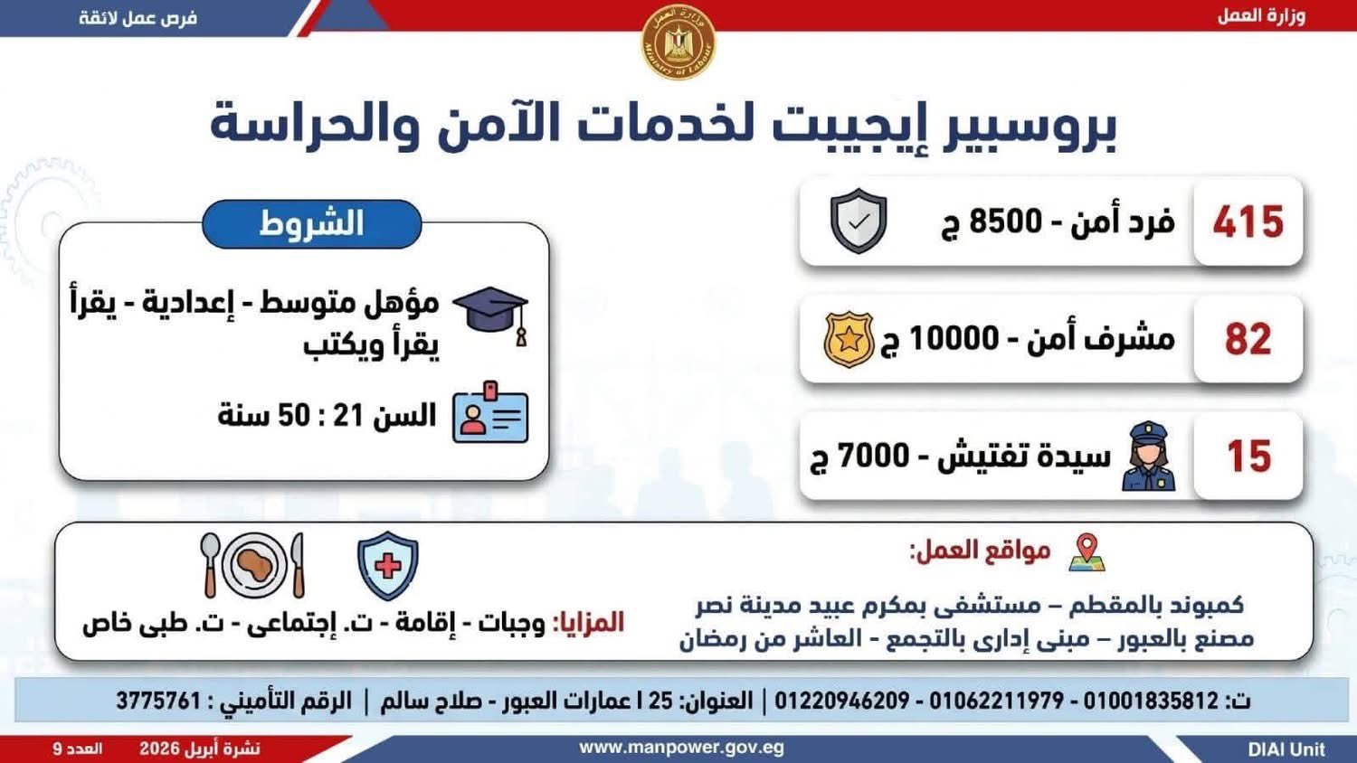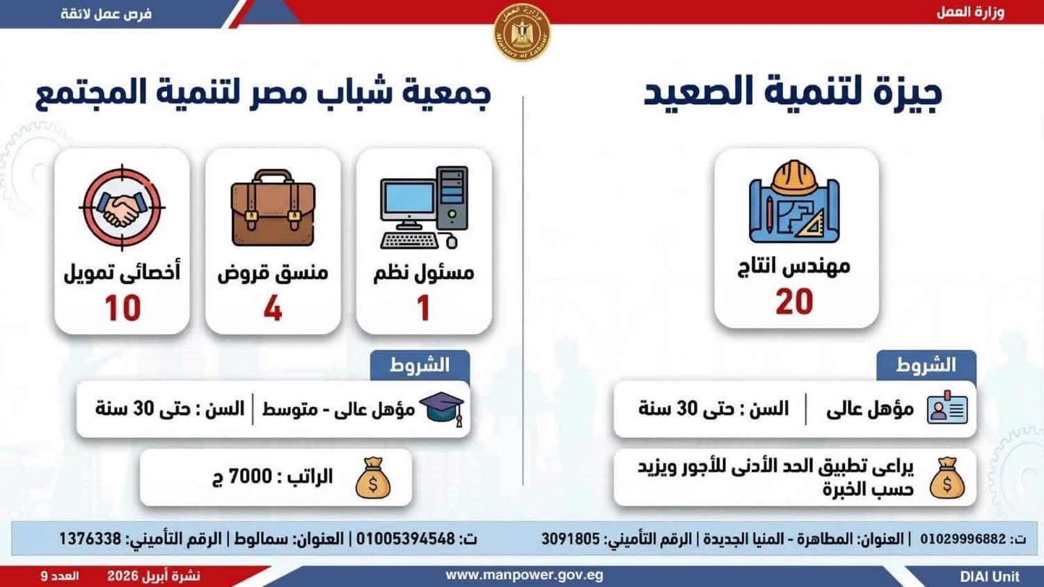 دعت الوزارة جميع الشباب الراغبين في خوض غمار التحدي والاستفادة من هذه الفرص إلى البدء في تجهيز سيرهم الذاتية، والتوجه إلى المنصة الإلكترونية الرسمية للوزارة أو مكاتب العمل التابعة لها في مختلف المحافظات، مؤكدة أن باب التقديم مفتوح لفترة محددة لاستيعاب الأعداد المطلوبة قبل بدء مراحل المقابلات الفنية.