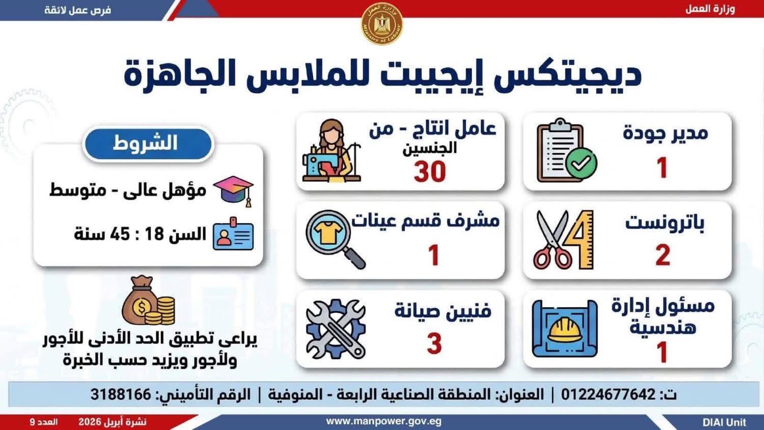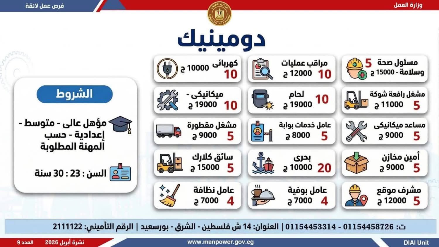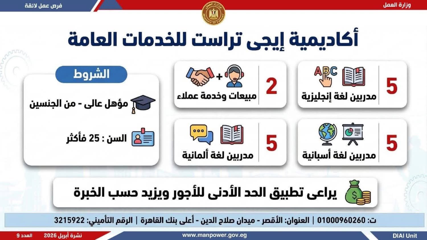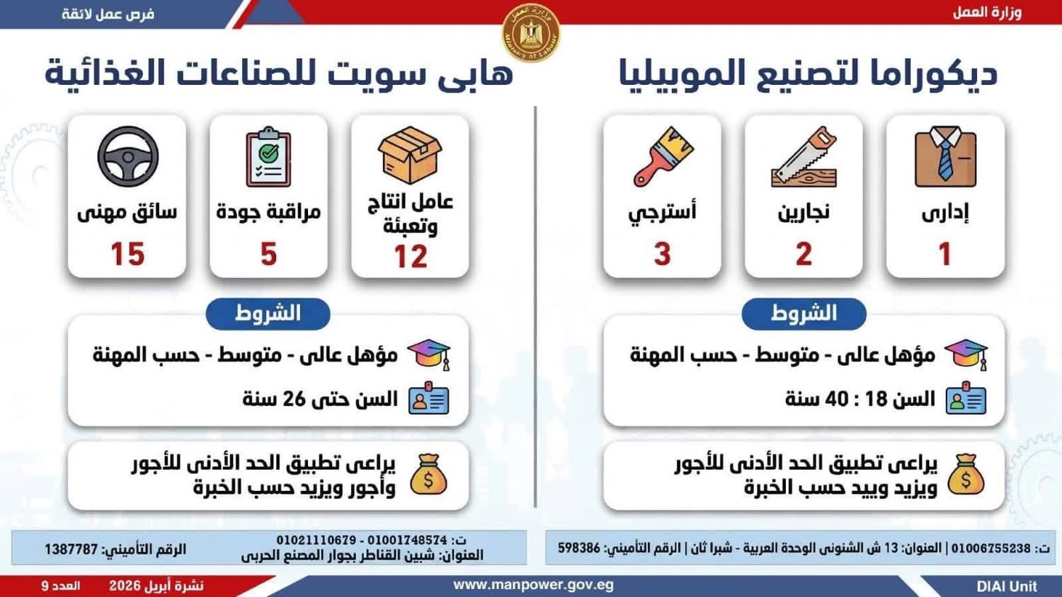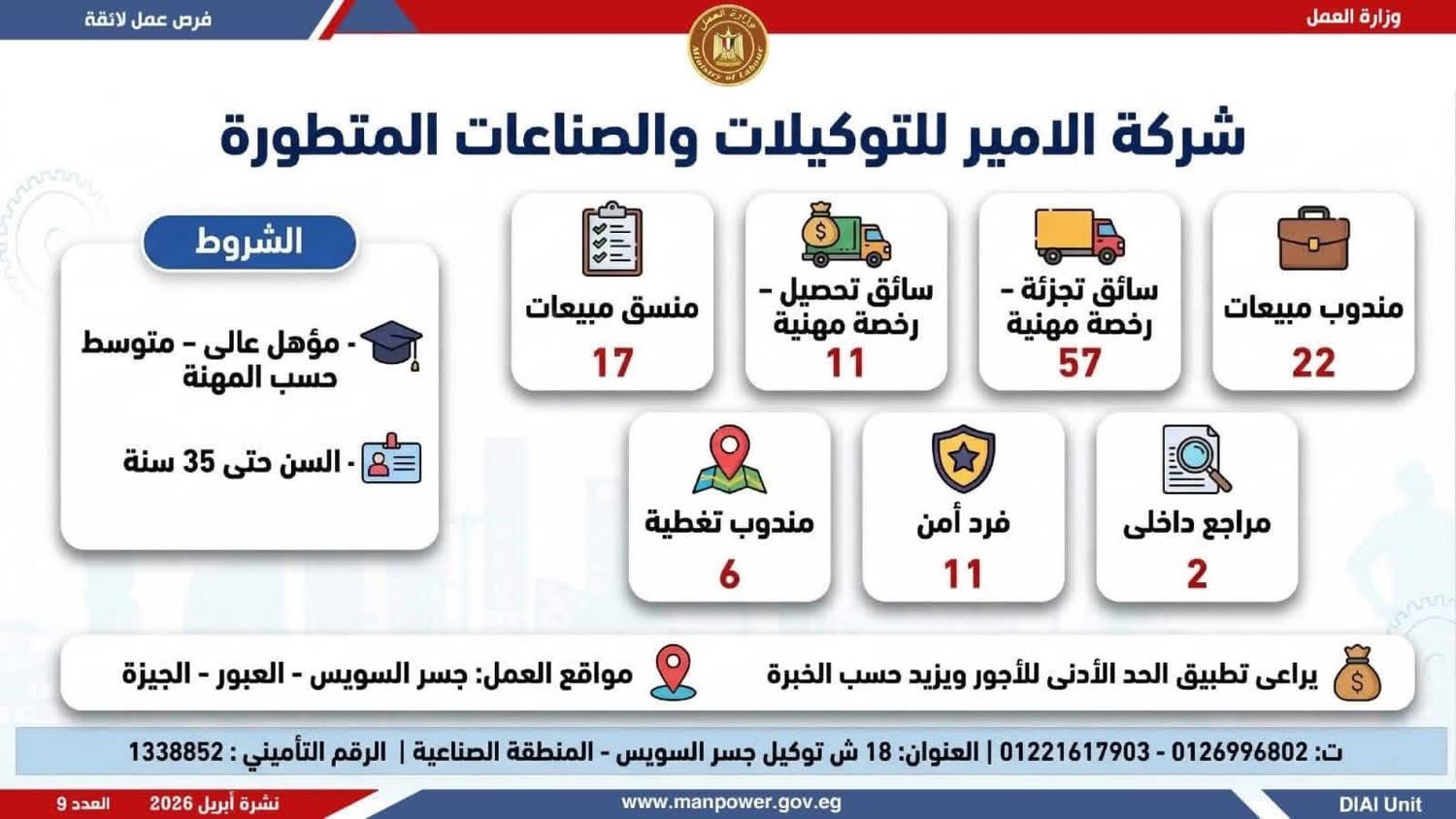 دعت الوزارة جميع الشباب الراغبين في خوض غمار التحدي والاستفادة من هذه الفرص إلى البدء في تجهيز سيرهم الذاتية، والتوجه إلى المنصة الإلكترونية الرسمية للوزارة أو مكاتب العمل التابعة لها في مختلف المحافظات، مؤكدة أن باب التقديم مفتوح لفترة محددة لاستيعاب الأعداد المطلوبة قبل بدء مراحل المقابلات الفنية.