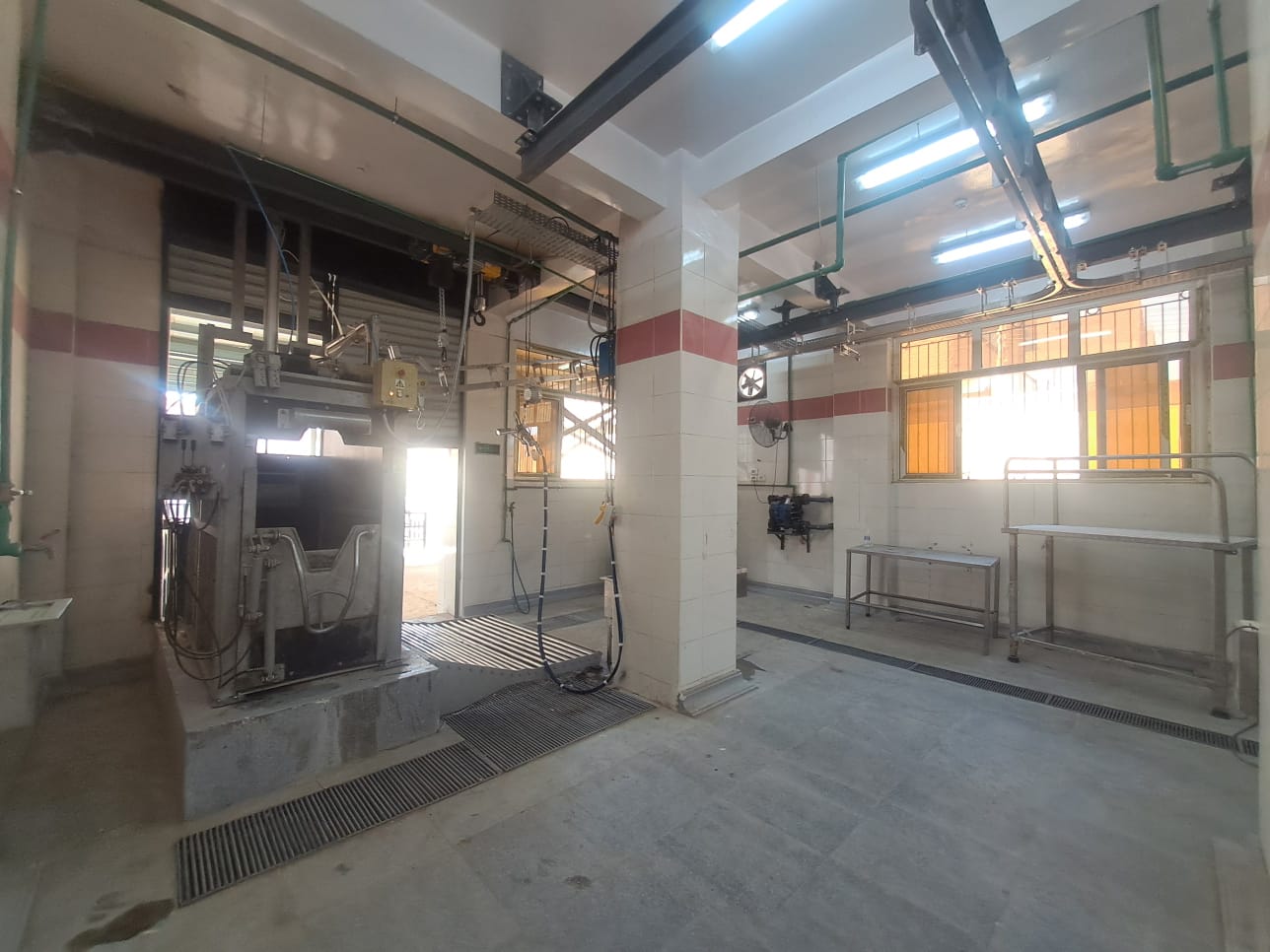 وأشارت الدكتورة منال عوض إلى أن مساحة المجزر تقدر بحوالي 3550 متر مسطح يحتوي المجزر على صالتين لذبح المواشي والخدمات الملحقة بهما من غرف ( سمط – جلود – غلايات – ضواغط – ثلاجة– منطقة تسليم) علي مساحة حوالي 1000 م ويحتوي عنبر ذبح المواشي علي خطين للتعليق من الاستانلس بطول المجزر من الصناديق حتى الثلاجات ومنطقة الاستلام وصندوقين ذبح بمعدل ذبح 15 : 20 رأس / ساعة لكل صندوق وزن من 400 إلى 650 كجم بالإضافة إلى عنبر الأغنام مبنى منفصل بمساحة 150م2 بمعدل 30 ذبح رأس/ ساعة .