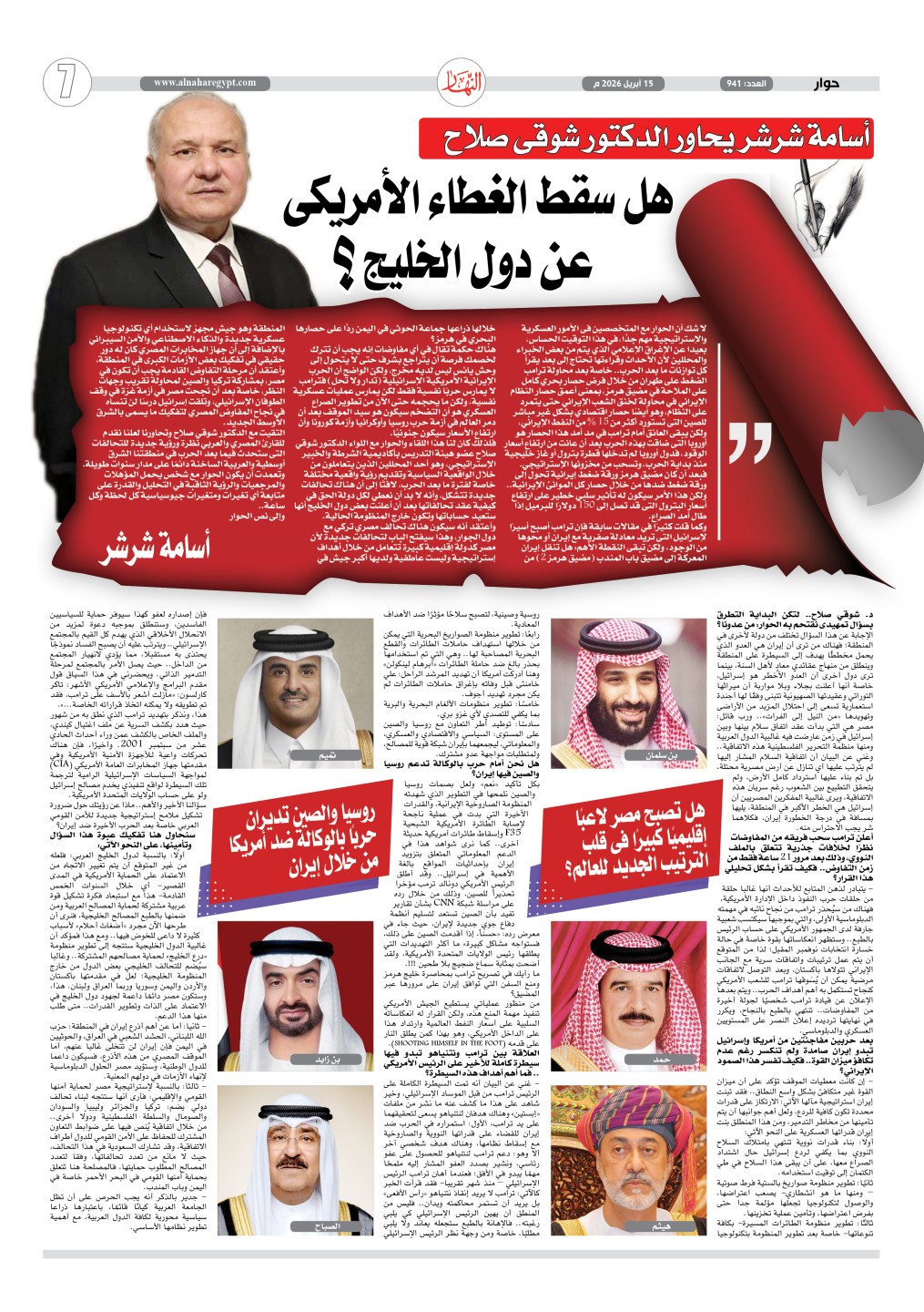 أسامة شرشر يحاور الدكتور شوقى صلاح: هل سقط الغطاء الأمريكى عن دول الخليج؟