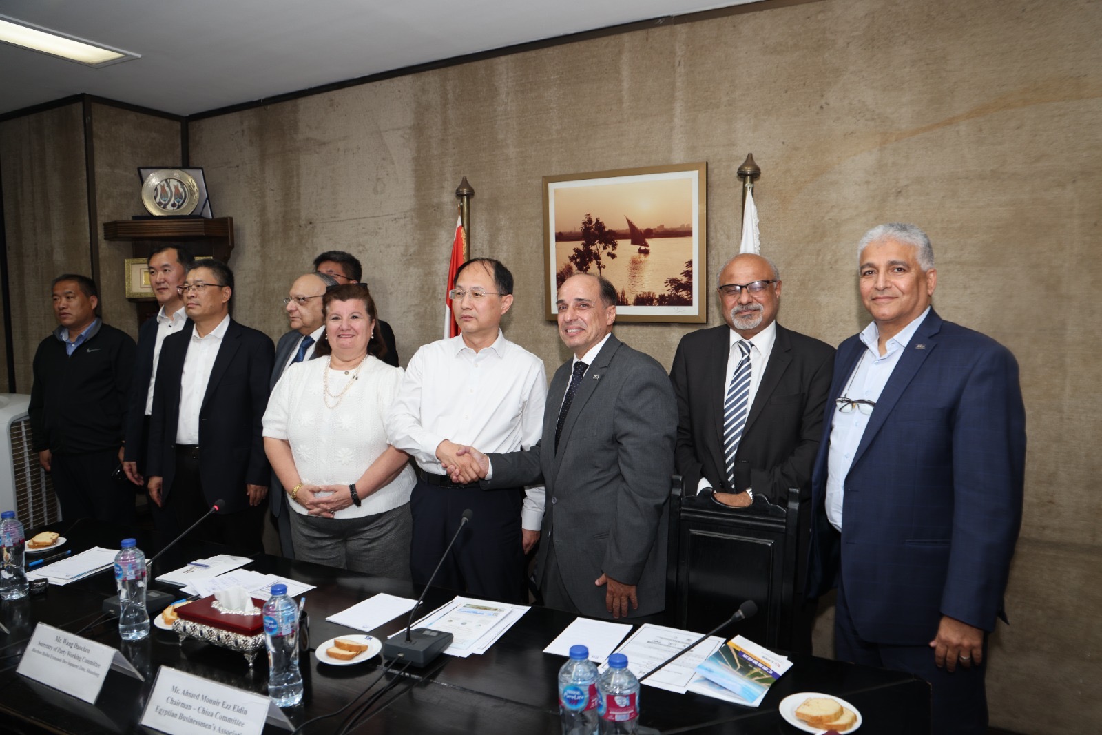 رأس اللقاء احمد عز الدين رئيس لجنة تنمية العلاقات مع الصين والدكتور مصطفي إبراهيم نائب رئيس اللجنة والدكتورة نيفين عبد الخالق، عضو مجلس إدارة الجمعية، إلى جانب عدد من أعضاء الجمعية، حيث تناولت المباحثات فرص التعاون في مجالات الصناعات الكيماوية والمنتجات المائية، إضافة إلى استعراض أنشطة الوفد الصيني التي تشمل إنتاج الملح، وصناعة الكيماويات البحرية، والبحث والتطوير في مجالات الآلات، والتطوير العقاري، والخدمات اللوجيستية، والموانئ، والسياحة، والتعليم، والتكنولوجيا الحيوية.