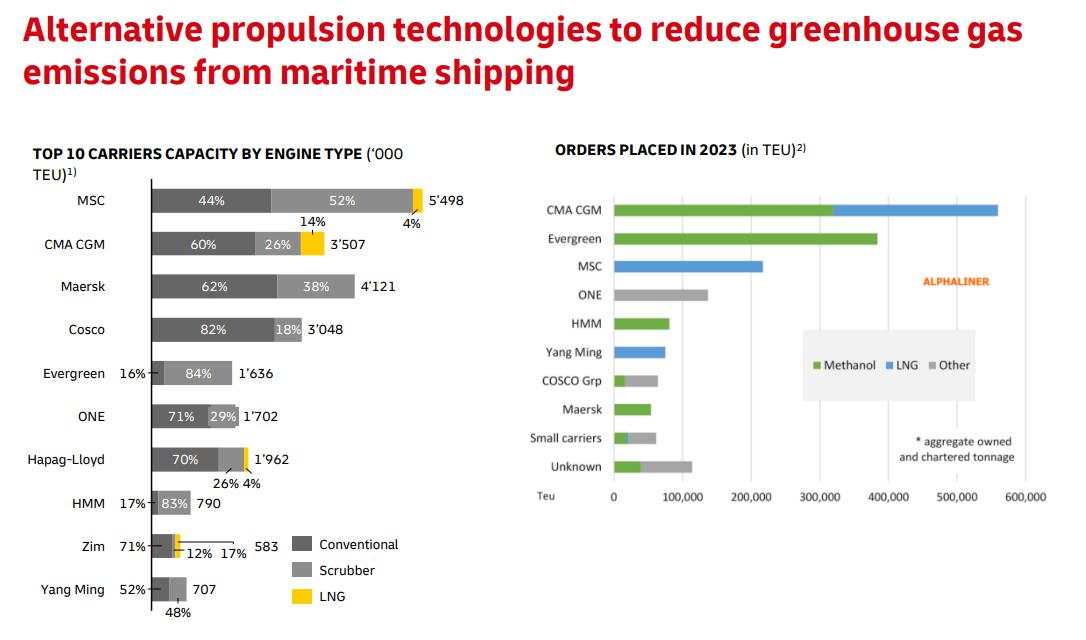 - الضغوط البيئية: يسهم النقل البحري بنحو 2.5% إلى 3% من إجمالي الانبعاثات العالمية، ما دفع المنظمة البحرية الدولية إلى استهداف خفض الانبعاثات بنسبة لا تقل عن 50% بحلول 2050 مقارنة بمستويات 2008.