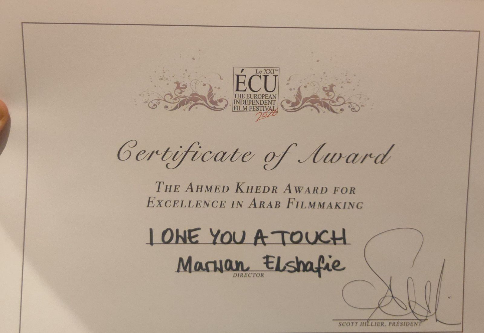 ومن جانبه، علّق المخرج مروان الشافعي على اختيار الفيلم قائلاً: "ما هو المفهوم الحقيقي للطهارة؟ من هذا السؤال ينطلق العمل. في مجتمعاتنا العربية، يُعد تعبير الرجل عن مشاعره عبئًا ثقيلًا، وتصبح لغة اللمس للتعبير عن الحزن أو المواساة محاطة بقيود اجتماعية كثيرة. بطل الفيلم يجد نفسه محاصرًا بهذه القيود في أكثر لحظات حياته ألمًا، ما يدفعه لرحلة قاسية بحثًا عن الطهارة المادية. مشاركتنا في مهرجان بحجم ÉCU فرصة لطرح هذا التساؤل الإنساني على جمهور عالمي يقدّر السينما التي تكسر الصمت."