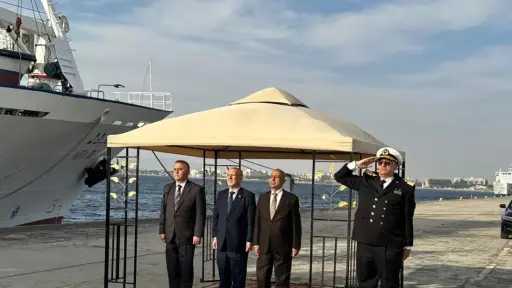 واستقبل المجرى الملاحى القطع الحربية الست التى تضم حاملة طائرات ومدمرة وسفينة إنزال وسفينة أبرار وسفينة برمائية وسفينة شحن، من المدخل الشمال للقناة ببورسعيد ضمن القافلة الشمالية.