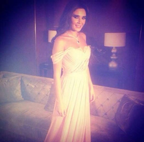 سيرين بدت ناعمة في فستان زهري مكشوف الكتفين، وهو اللون الذي يرمز لمكافحة هذا المرض على مستوى العالم.