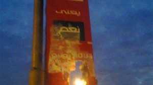 وفوجى المواطنون اثناء خروجهم باشتعال النيران فى لافتة مكتوب عليها ” المشاركة فى الدستور يعنى نعم ل30 يونيو و25 يناير”، والتى كانت مثبته على  الطريق الدائرى الرابط بين طريق بنى سويف الزراعى بالصحراوى .