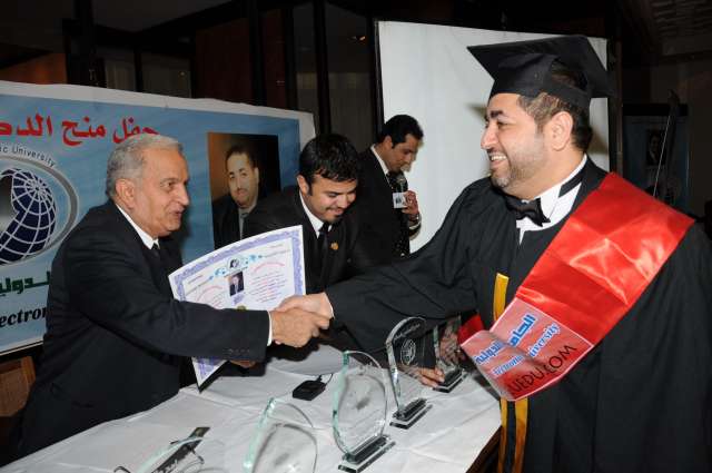 بالصور .. الجامعة الالكترونية الدولية تمنح الدكتوراة الفخرية لمصرى واردنى وتونسية