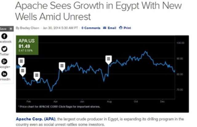 وأعلنت"آباتشي" التي تتخذ من"هيوستن" مقرا لها أنها لم تغير شراكتها مع الحكومة المصرية على الرغم من الاضطرابات السياسية والأمنية التي شهدتها البلاد على مدار الأعوام الثلاثة الماضية.