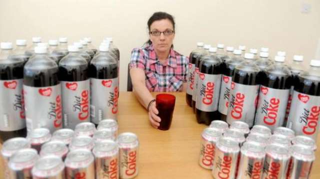 وكانت جاكي بالان، البالغة من العمر 42 عاماً، وهي أم لخمسة أطفال، قد راجعت الطبيب قبل سنوات عندما نصحها بالتخلي عن تناول المشروبات الغازية العادية لصالح مشروبات الــ"دايت"، لتجد نفسها لاحقاً مدمنة "دايت كوكا كولا"، وأنفقت أكثر من 500 جنيه استرليني شهرياً لشراء المشروبات الغازية.