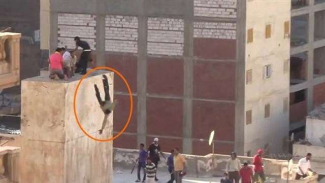 ومن بين المتهمين المتهم محمود حسن رمضان عبد النبى الذى كان يحمل العلم الأسود الخاص بتنظيم "القاعدة"، الذى اعتلى سطح أحد العقارات ومعه آخرون، وقام بقتل طفل من خلال طعنه بسكين ثم ألقى به من أعلى سطح العقار فى مشهد مروع بثته القنوات الفضائية ووسائل الإعلام المختلفة وقت وقوعه