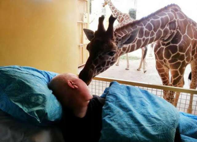 «قبله وداع» من زرافة «روتردام» لعامل هولندي على وشك الموت