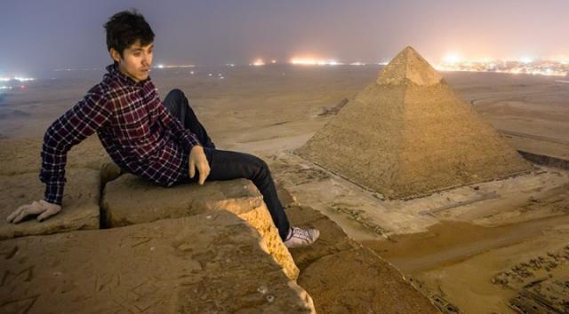 بالصور .. مختل عقليًا يعتلي الهرم الأكبر.. ويشترط إحضار وجبة «بطاطس مقلية» للنزول