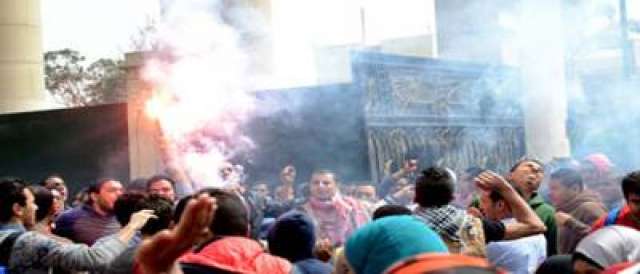 طلاب الإخوان يطلقون الشماريخ بمحيط مبنى إدارة جامعة عين شمس