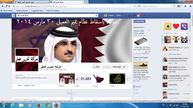يأتى ذلك وسط انباء تداولتها حركة اطلقت على نفسها اسم «تحرير قطر» ودشنت صفحة لها على «فيس بوك» بأن الشعب القطرى «لبى النداء»، ونزل فى مسيرات ومظاهرات منذ الاحد تطالب بإسقاط عائلة (آل ثاني) التى يمثلها (تميم) ونظامه العميل، مضيفة أن «هذا اليوم 30 مارس هو يوم الشرف والعزة للشعب العربي».