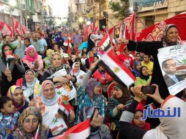 توافد المئات من اهالي الاسكندريه علي المؤتمر الجماهيري الذي نظمته الحمله الرسميه لدعم ترشح المشير عبد الفتاح السيسي لرئاسه الجمهوريه بالمحافظه بالتنسيق مع ائتلاف العطارين اليوم الخميس .
