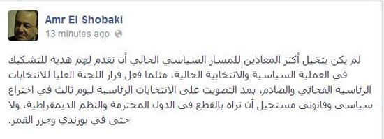 ووصف "الشوبكى"، القرار بـ"الاختراع السياسي والقانوني"، لافتًا إلى أنه مستحيل أن تراه بالقطع فى الدول المحترمة والنظم الديمقراطية، ولا حتى فى بورندى وجزر القمر، حسب قوله.