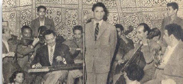 غنى العندليب الأسمر عبد الحليم حافظ (21 يونيو 1929 – 30 مارس 1977) قبل أن ينعم بشهرته ومجده فى أحد الأفراح على سطح منزل فى السيدة زينب عام 1950، وخلفه يعزف على آلة القانون الموسيقى المعروف أحمد فؤاد حسن.