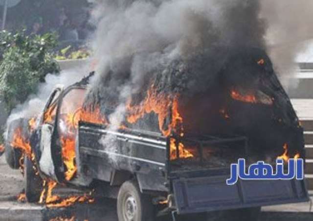 طلاب الإخوان يشعلون النار فى سيارة شرطة بجامعة المنصورة