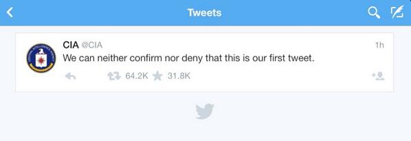 أطلقت،منذ قليل، المخابرات المركزية الأمريكية حسابها الرسمي على موقع التواصل الاجتماعي تويتر.