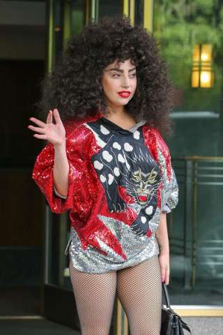 فقد ظهرت غاغا بهذا اللوك المضحك الأسبوع الماضي في نيويورك وقالت على تويتر "أنا أبدو كشعري الآن" وربما تقصد أنها تود العودة بالماضي إلى حقبة الثمانينات. ولم تكتفي غاغا بشناعة الباروكة بل أضافت المزيد من الألم للعيون بفستانٍ قصيرٍ جداً بطبعة النمر وجوارب راقصات التعري الشبكية وجزمة جلدية بساقٍ عالية.