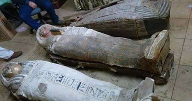 ضبط 3 توابيت وجثتين محنطتين و82 تمثالا من العصر البطلمى مع تاجر بالدقهلية