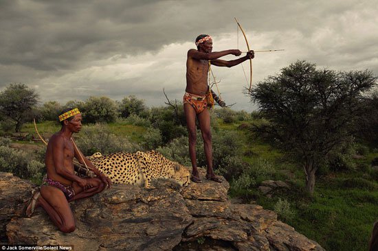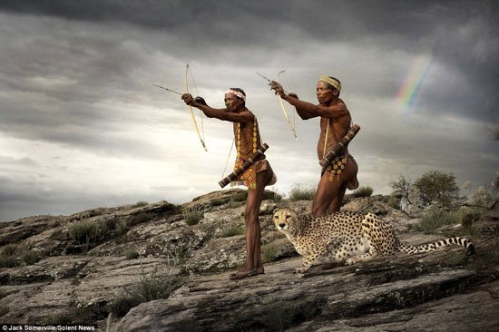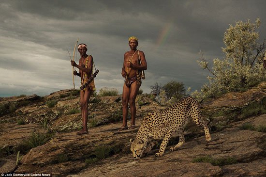 نشرت صحيفة الديلى ميل البريطانية صوراً لصيادين من القبائل الأفريقية القديمة فى دولة نامبيبا أثناء قيامهم بعمليات الصيد البرية بأحد الغابات، مستخدمين القوس والأسهم يصاحبهم فهد متوحش يساعدهم فى عمليات الصيد. وتوضح الصور مدى علاقة الصداقة بين الشخصين والفهد فى مشهد غير معتاد لم نره سوى فى مسلسلات الكرتون مثل "ماوكلى"، وتقول الصحيفة نقلاً عن المصور الذى التقط هذه الصور إن هذه القبائل تكنّ احتراما عميقا للحياة البرية والحيوانات المتوحشة.